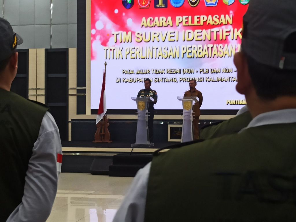 Prosesi pelepasan tim lapangan oleh Pangdam XII Tanjungpura di Makodam XII/Tanjungpura. Diawali dengan pembekalan tim survey, apel pelepasan oleh Plh. Sekretaris BNPP/Deputi bidang Pengelolaan Batas Wilayah Negara didampingi Forkopimda Kabupaten Sintang