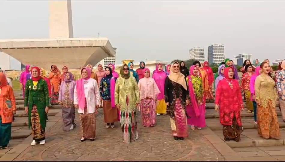 Dengan kebaya hitam dan sarung batik aku tiba di Monas. Rupanya yang lain mengenakankan kebaya yang dipadankan dengan sarung sutera Bugis-Makassar. Syukurnya beberapa ibu-ibu juga datang dengan kebaya dan sarung batik sehingga aku tidak merasa sendiri hehehe..