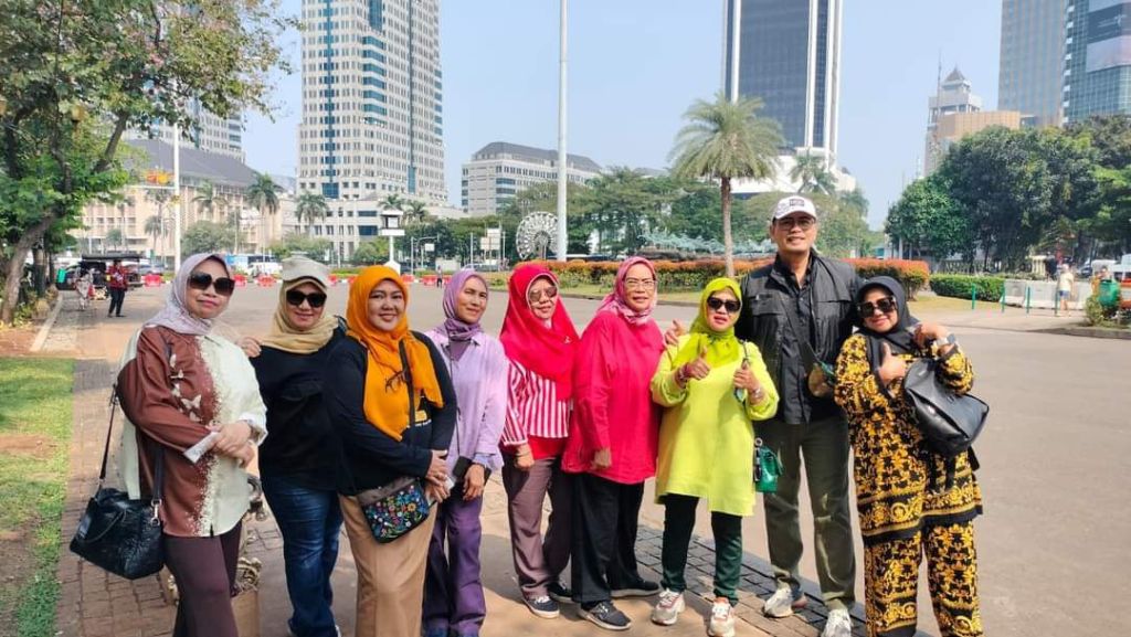 Belum banyak yang datang saat aku tiba di Monas. Tapi beberapa ibu-ibu yang aku kenal mulai berdatangan. Sehingga riuh tidak dapat dihindarkan.