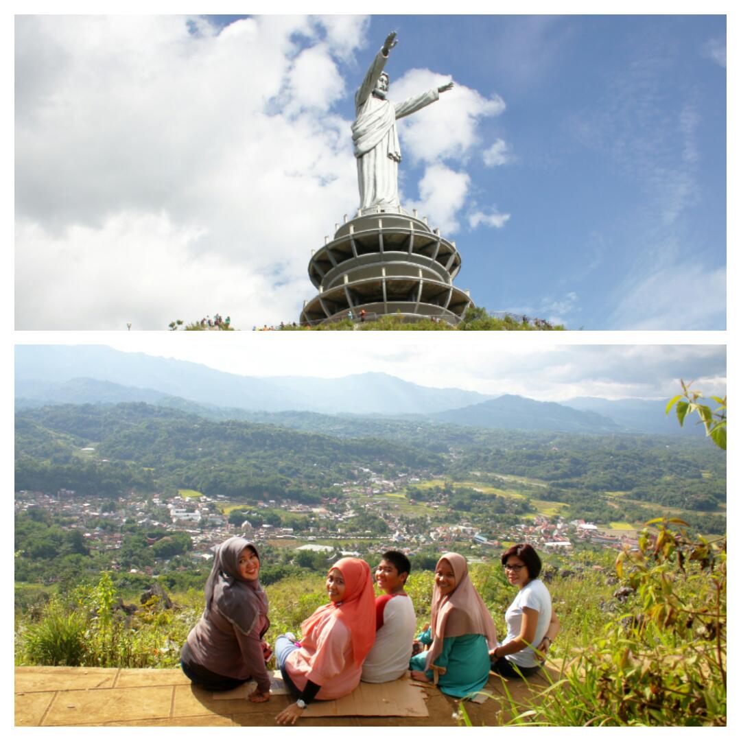 Satu monumen lagi yang menjadi tujuan wisata di Makale Toraja adalah replika Yesus di puncak Burake, Makale. Cukup berliku untuk sampai di monumen ini. Jalanan yang berbatu dan tikungan tajam yang senantiasa membuat kita berhati-hati terutama saat bertemu dengan kendaraan lain dari arah berlawanan. Belum lagi begitu tiba, kita harus sabar menunggu parkiran karena pengunjung yang padat. Setelah itu perjalanan dilanjutkan dengan menyusuri anak-anak tangga hingga mencapai monumen. Huffff sungguh luar biasa perjuangan mencapai monumen Burake ini.