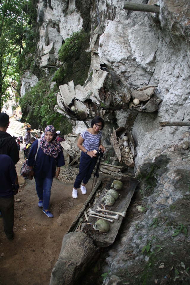 Sedikit seram saat memasuki gua Londa, kita akan melihat tengkorak-tengkorak yang berserakan namun tetap tertata. Ada pengaturan tinggi rendah tempat penyimpanan peti-peti mati berisi tengkorak disesuaikan dengan garis keturunan dan keluarga, meskipun harus ditumpuk.