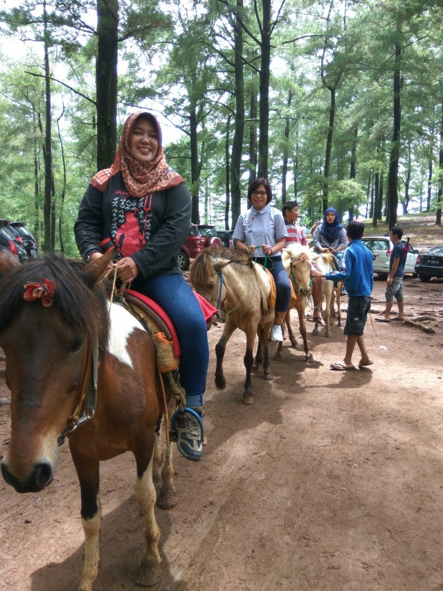 Perjalanan pun berlanjut, kami akhirnya tiba di Malino. Sedikit ada hambatan di jalan, namun tidak menyurutkan semangat untuk berpetualang dengan menunggang kuda lokal di hutan pinus Malino.