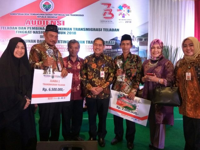 “Saya senang tadi kita memberikan penghargaan terhadap transmigran teladan dan pembina teladan, kita bisa lihat bahwa transmigran teladan yang lima tahun lalu masih hidup miskin di Pulau Jawa sekarang bisa hidup di daerah transmigran dengan penghasilan Rp 600 juta per tahun. Tentunya tidak semua transmigran bisa sukses seperti yang teladan-teladan ini, tapi sekarang dengan adanya era teknologi saya minta untuk dibuatkan video kisah, tantangan para transmigran, hingga mereka jadi sukses, supaya jadi inspirasi buat transmigran-transmigran yang lain,” jelas Eko Putro Sandjojo, Menteri Desa, Pembangunan Daerah Tertinggal, dan Transmigrasi usai menyerahkan piala penghargaan di Balai Makarti Mukti Tama Jakarta (15/08/2018)