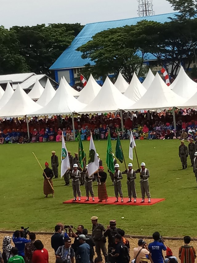 Setelah seluruh peserta karnaval dan undangan berkumpul di Stadion I La Galigo Palopo, upacara Peringatan Hari Jadi Luwu ke-751 dan Hari Perlawanan Rakyat Luwu ke-73 dimulai dengan pengibaran Pataka, pembacaan sejarah dan sambutan-sambutan.