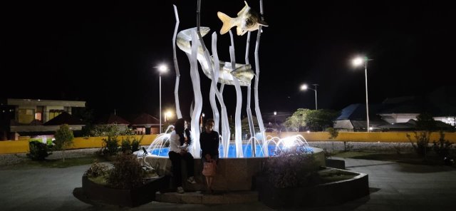 Berhubung kami excited sekali, bukannya istirahat, malah memilih untuk keluar menikmati malam di Tentena. Tujuan kami adalah ke Taman Kota atau Taman Tentena yang juga memiliki tugu ikan mas dan masapi.