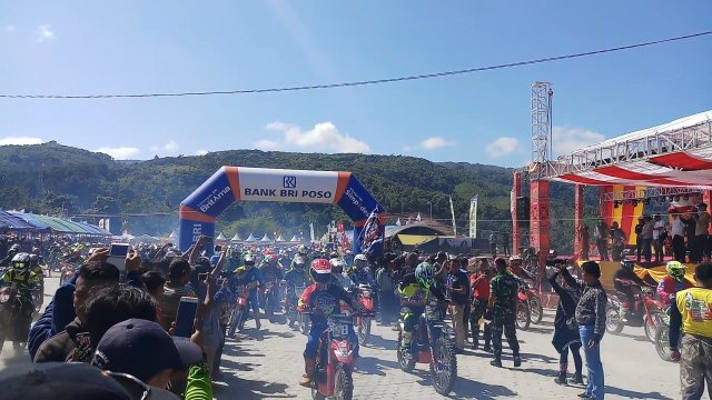 Hingga tibalah saat para riders ini dilepaskan oleh Bupati Poso Darmin Agustinus Sigilipu. Wah… sangking banyaknya riders yang ikut, bendera start berulang kali diangkat untuk mengatur jarak dan keberangkatan para riders.