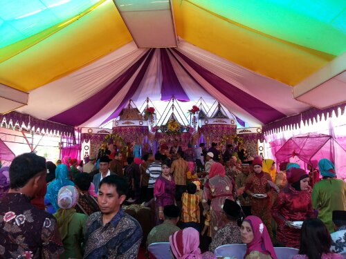 Suasana pesta yang meriah para tetamu datang silih berganti mengucap selamat. Para keluarga saling bertemu dan bersilaturahmi. Indahnya jalinan kekeluargaan yang baru terbina.