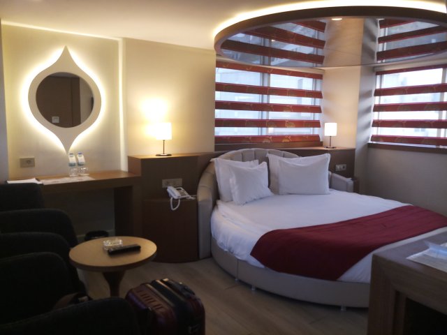 Hotelnya tidak begitu jauh, tapi tetap harus berkendaraan untuk sampai kesana. Hotelnya unik, namun pegawainya sedikit kurang ramah. Saya diberikan kamar di lantai 7 sedangkan lift hanya sampai lantai 6. Terpaksa naik tangga untuk ke kamar saya. Tapi begitu tiba di kamar, WOW, kamarnya luar biasa megah 😁.
