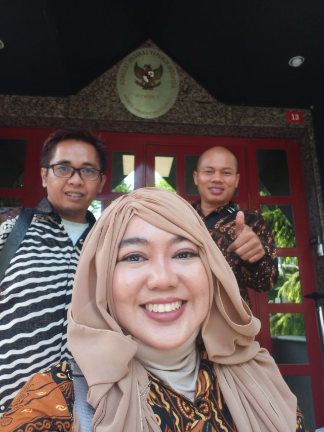 Alhamdulillah, meski badan terasa lelah, kami tiba di Turki dengan perasaan lega. Perbedaan waktu kedatangan dengan pak Sakir membuat kami menunggunya di bandara. Tapi tentu saja tidak menjemukan karena spot fotonya buanyakkk sekali hehehhee. Dan serasa orang penting banget, seperti tamu2 VIP wuish, kami dijemput staf protokol KJRI bernama Oki sehingga semua lancar-lancar saja. Orangnya ceria jadi banyak menjelaskan sepanjang perjalanan menuju kantor Konjen RI Istanbul.