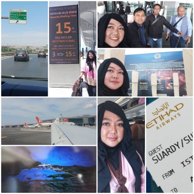 Meninggalkan Indonesia menuju Istanbul, kami menggunakan Etihad Airways dengan transit di Abu Dhabi. Pertama kalinya saya menaiki sebuah pesawat yang menyediakan akses wifi di dalam pesawat. Wow… dan saya menjadi sangat kampungan. Dengan penasaran saya pun membeli paket dan benar saja.. saya bisa online sepanjang perjalanan dari Jakarta ke Abu Dhabi.