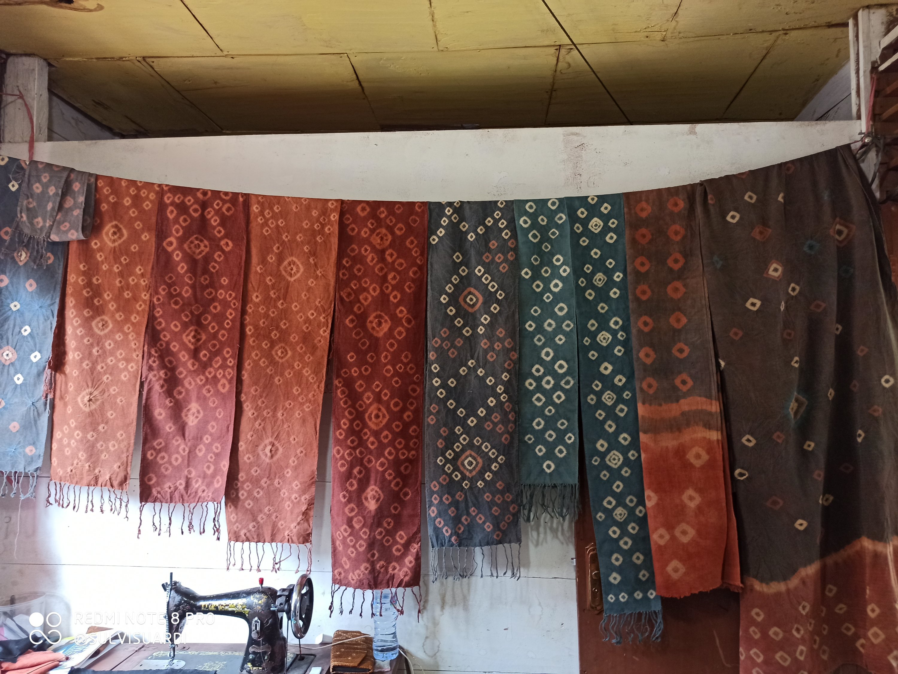 Benang dan kain diikat sebelum dicelup ke pewarna